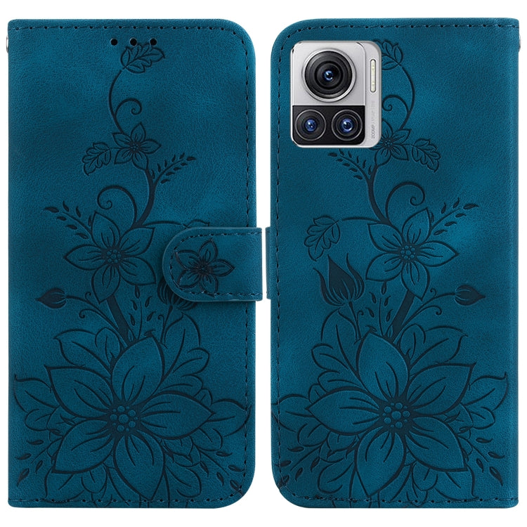 Funda de Cuero con Relieve Lily para Motorola Moto S30 Pro Edge 30 Fusion 5G (Azul Oscuro)