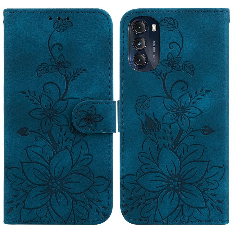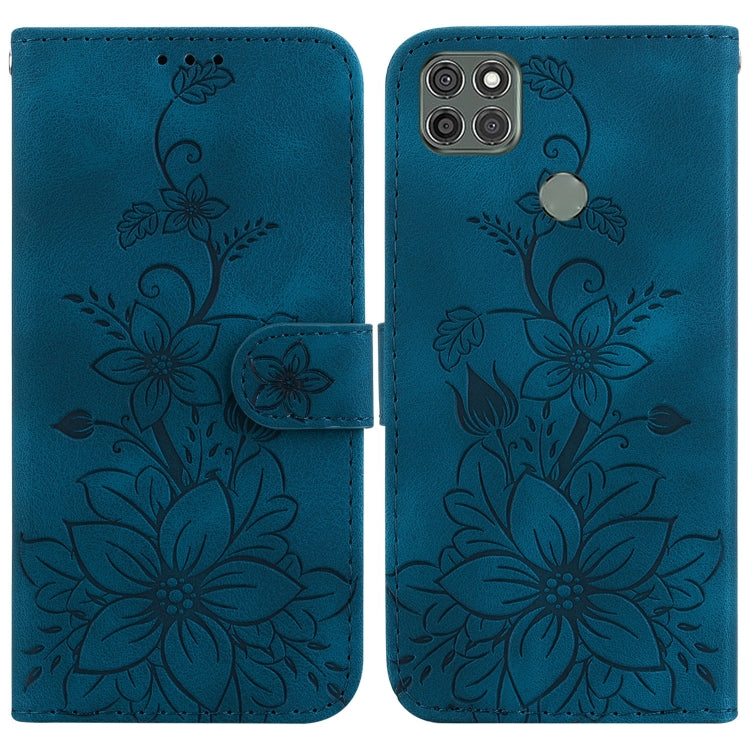 Funda de Cuero en Relieve para Motorola Moto G9 Power Lily (Azul Oscuro)
