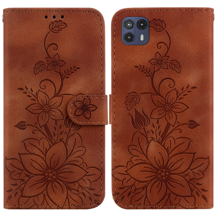 Funda para Teléfono Motorola Moto S30 Pro Edge 30 Fusion 5G Cuero con Relieve Lily (Marrón)