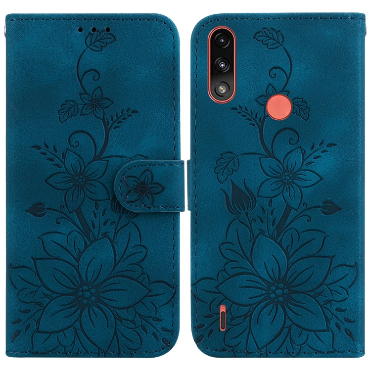Funda para Motorola Moto E20 E30 E40 de Cuero con Relieve Lily (Azul Oscuro)