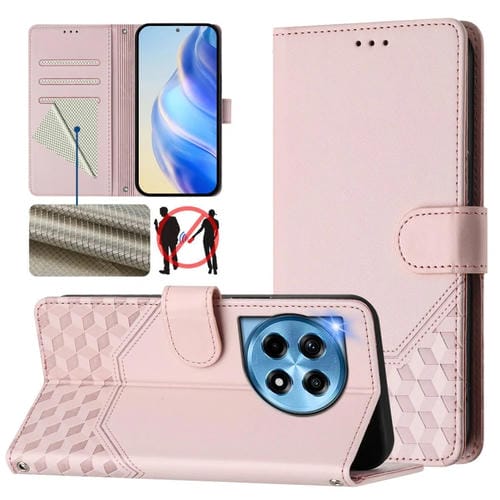 Funda de Cuero con Relieve de Panal para OnePlus 12R 5G Global Rfid (Rosa)
