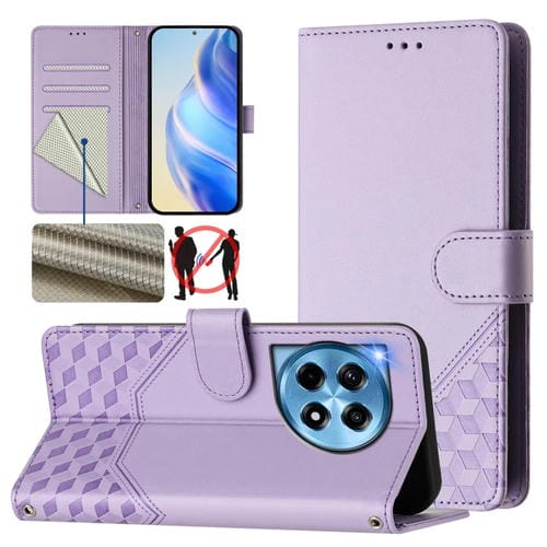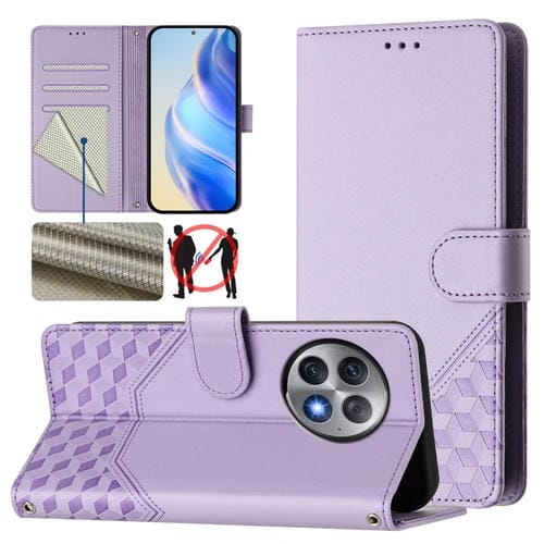 Funda de Cuero Rfid con Relieve de Panal Global para OnePlus 12 5G (Morado Claro)