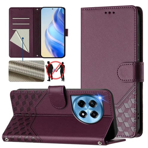 Funda de Cuero Rfid con Relieve de Panal Global para OnePlus 12R 5G (Violeta)