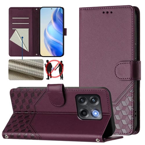 Funda de Cuero Rfid con Relieve en Panal para OnePlus Ace Pro 5G/10T 5G (Violeta)