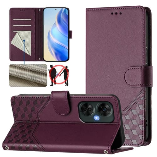 Funda de Cuero Rfid con Relieve en Panal para OnePlus Nord Ce 3 Lite/Nord N30 (Violeta)