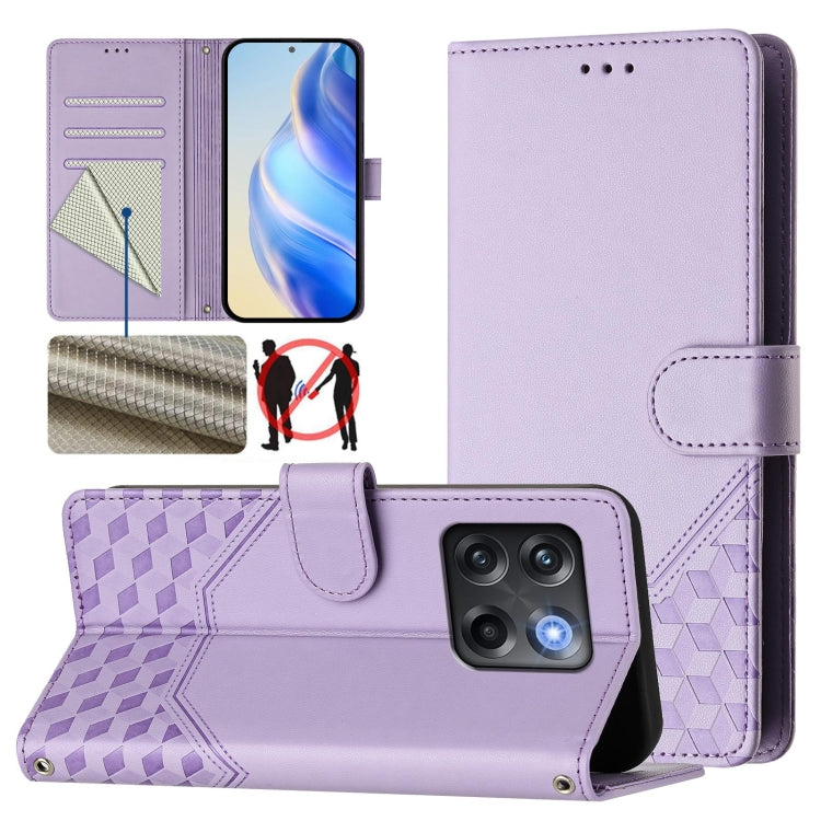 Funda de Cuero Rfid con Relieve de Panal para OnePlus 10 Pro 5G (Morado Claro)