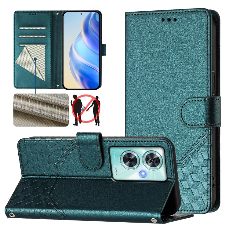 Funda de Cuero RFID con Relieve en Panal para OnePlus Nord CE4 Lite (Verde Pavo Real)