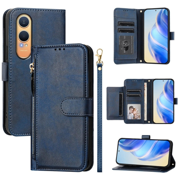 Funda de Cuero con Cremallera y Ranuras para Tarjetas para OnePlus Nord Ce4 Lite (Azul)
