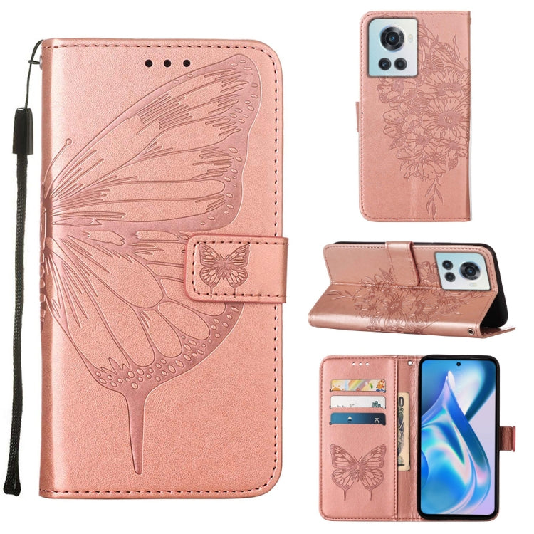 Funda para OnePlus Ace 5G de Cuero con Mariposa en Relieve (Oro Rosa)