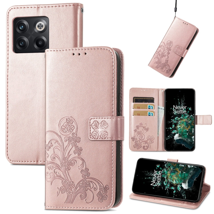 Estuche para Teléfono OnePlus 10T Cuero Hebilla en Relieve Cierre de Cuatro Hojas (Oro Rosa)