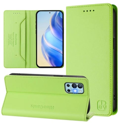 Funda de Cuero con Doble Pliegue y Succión Magnética Rfid para OnePlus Nord 2T Rc01 (Verde Hierba)