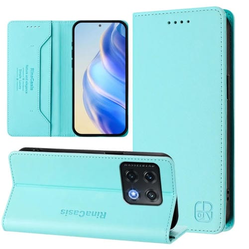 Funda de Cuero con Doble Pliegue y Succión Magnética para OnePlus 10 Pro Rc01 (Verde Menta)
