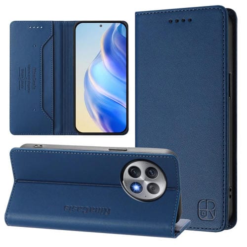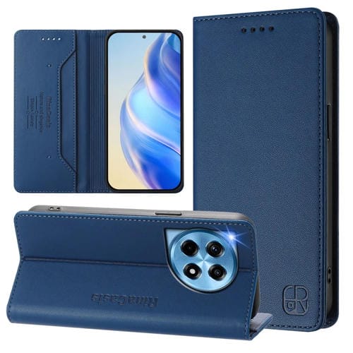 Funda de Cuero con Doble Pliegue y Succión Magnética RFID para OnePlus 12R Rc01 (Azul Oscuro)