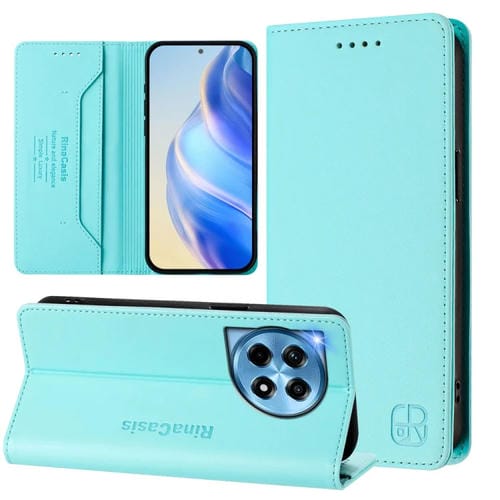 Funda de Cuero con Doble Pliegue y Succión Magnética Rfid para OnePlus Nord 2T Rc01 (Verde Menta)