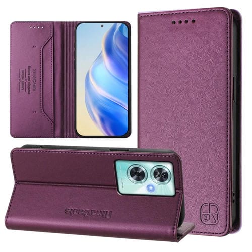 Funda de Cuero con Doble Pliegue y Succión Magnética RFID para OnePlus Nord CE 2 5G RC01 (Violeta)