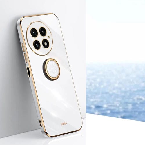 Funda TPU Xinli para OnePlus 13 con Borde Recto 6D Galvanizado y Soporte para Anillo (Blanco)