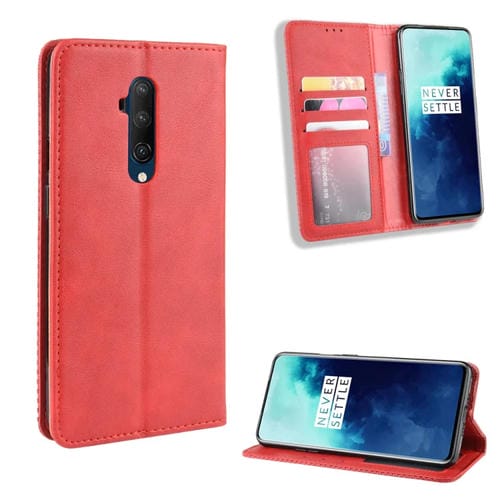 Funda de Cuero con Textura de Caballo Loco y Hebilla Magnética para OnePlus 7T Pro (Rojo)