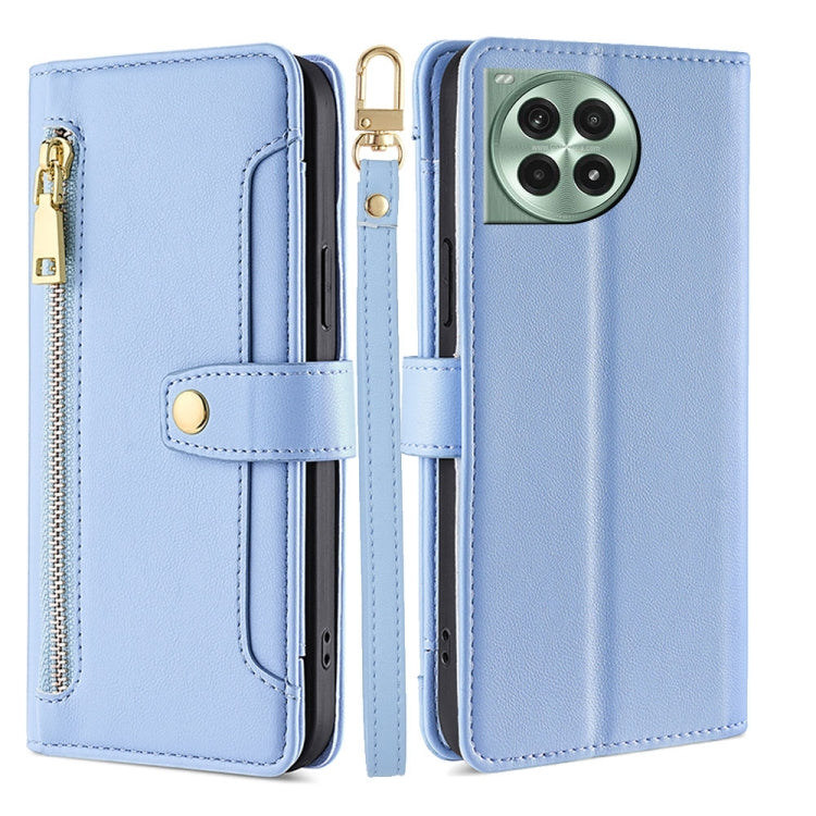 Funda de Cuero Tipo Billetera para OnePlus Ace 3 Pro 5G con Cremallera y Textura de Oveja (Azul)