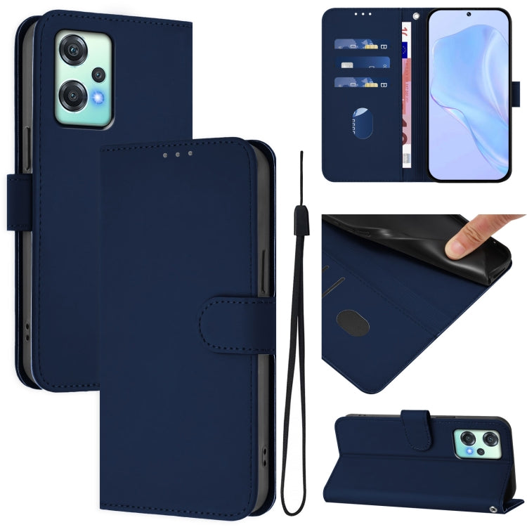 Funda de Cuero Textura Piel para OnePlus Nord Ce 5G con Cordón (Azul Lago)