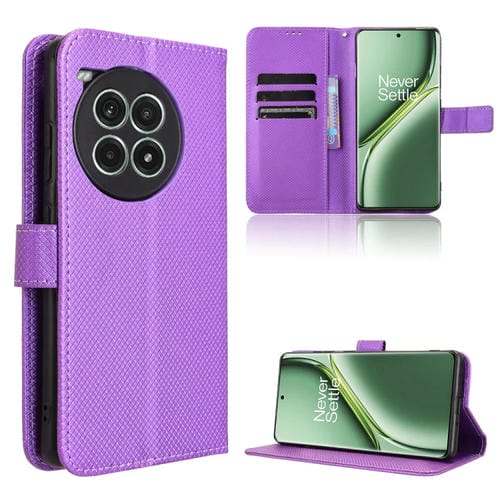 Funda de Cuero con Textura de Diamante para OnePlus Ace 3 Pro (Morado)