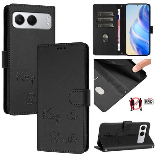 Funda de Cuero Rfid con Relieve Sonriente para OnePlus Nord 4 5G (Negra)