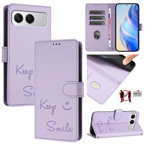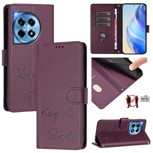 Funda de Cuero Rfid con Relieve Sonriente para OnePlus Nord 4 5G (Morado Claro)