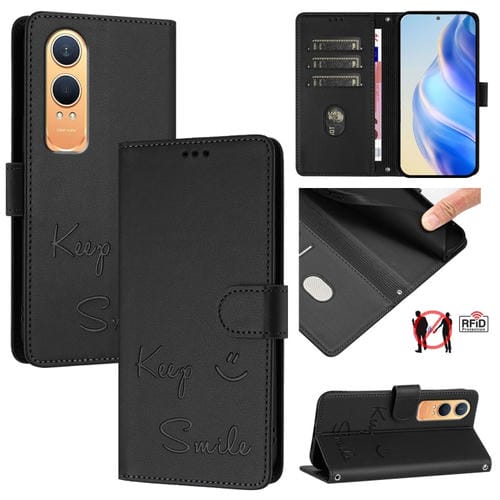 Funda de Cuero Rfid con Relieve Sonriente para OnePlus Nord Ce4 Lite (Negra)