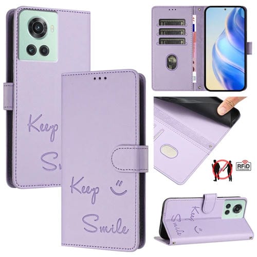 Funda de Cuero Rfid con Relieve Smile para OnePlus 10R/Ace (Morado Claro)