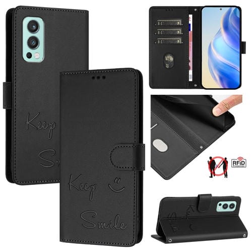 Funda de Cuero Rfid con Relieve Sonriente para OnePlus Nord 2 5G (Negra)