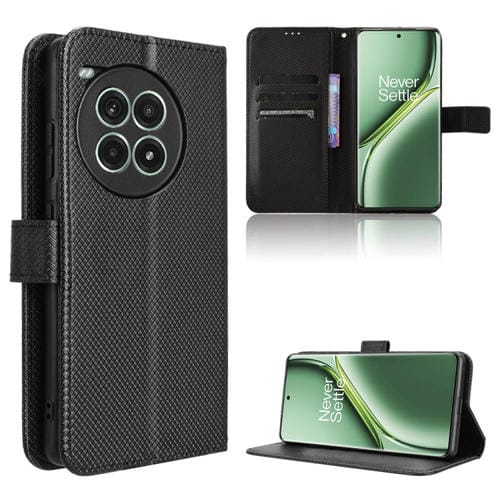 Funda de Cuero con Textura de Diamante para OnePlus Ace 3 Pro (Negra)