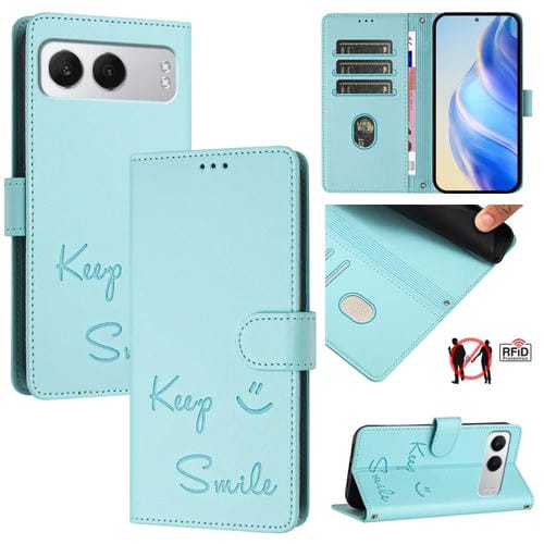 Funda de Cuero Rfid con Relieve Sonriente para OnePlus Nord 4 5G (Verde Menta)