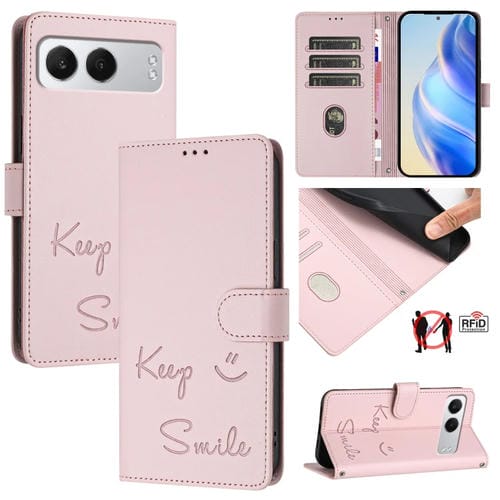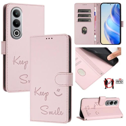 Funda de Cuero Rfid con Relieve Sonriente para OnePlus Nord 4 5G (Rosa)