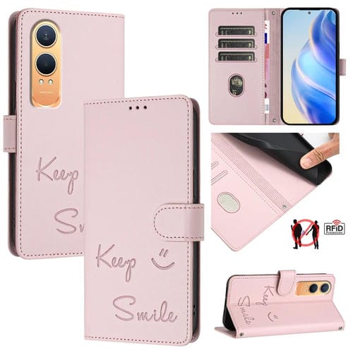 Funda de Cuero Rfid para OnePlus Nord Ce4 Lite con Relieve Sonriente (Rosa)