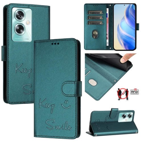 Funda de Cuero Rfid con Relieve Sonriente para OnePlus Nord N30 Se (Verde Pavo Real)