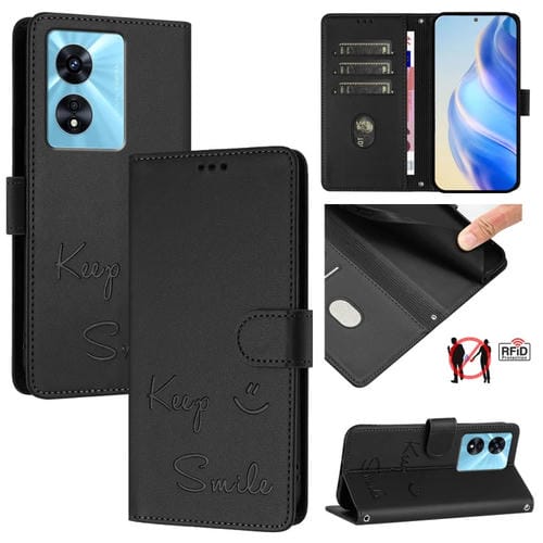 Funda de Cuero Rfid con Relieve Sonriente para OnePlus Nord N300 (Negra)