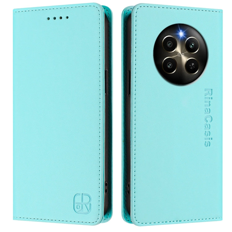 Funda de Cuero con Doble Pliegue y Succión Magnética para Realme 13 Pro/13 Pro+ 5G Rc01 (Verde Menta)