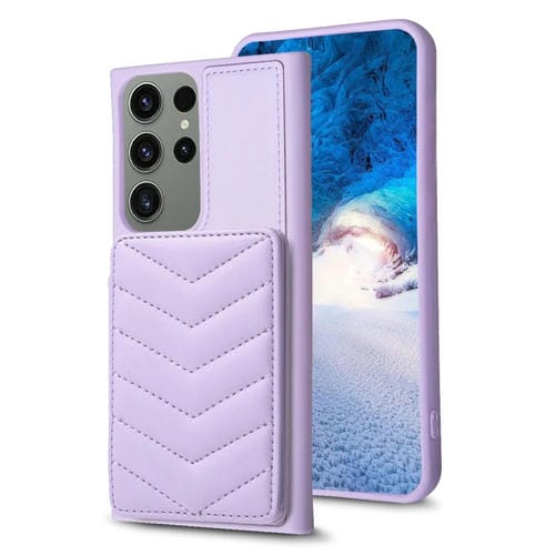 Para Samsung Galaxy S23 Ultra 5G BF26 Wave Pattern Card Bag Holder Phone Case (Púrpura)