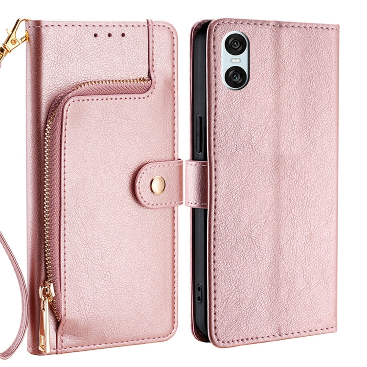 Funda de Cuero con Cremallera para Teléfono Sony Xperia 10 Vi (Oro Rosa)