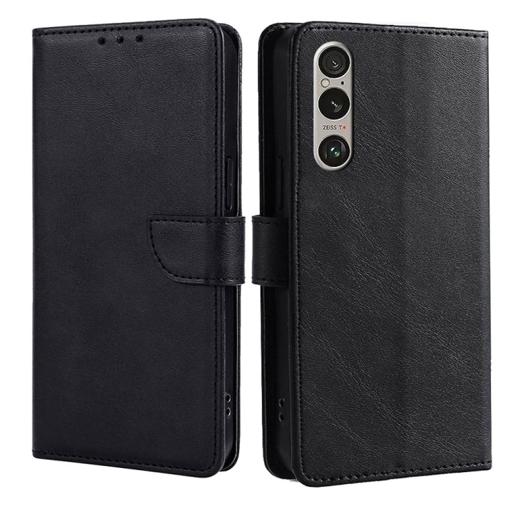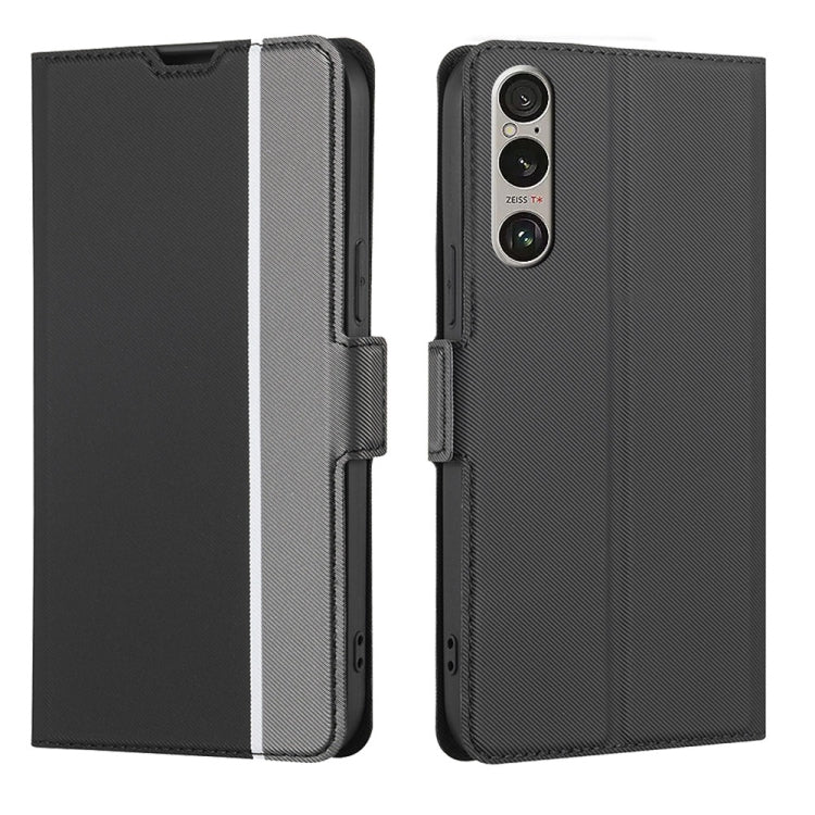 Funda de Cuero con Textura de Sarga y Botones Laterales para Sony Xperia 1 Vi (Negra)