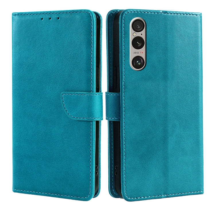 Funda de Cuero Textura de Sarga con Botones Laterales para Sony Xperia 1 Vi (Azul)