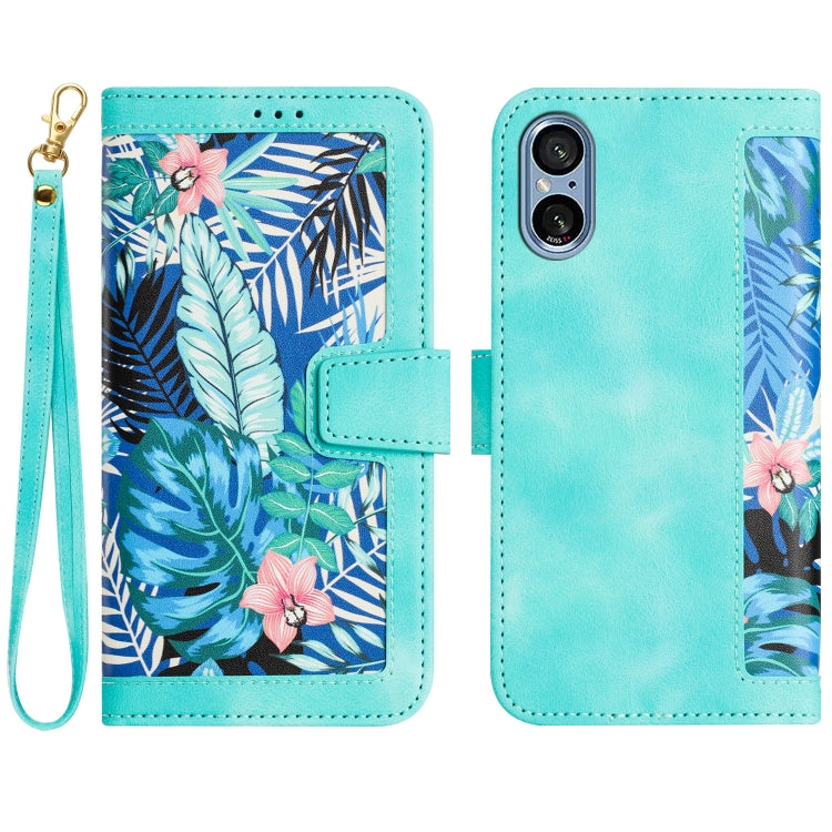 Funda de Cuero para Sony Xperia 5 V con Estampado Floral y Cordón (Verde)