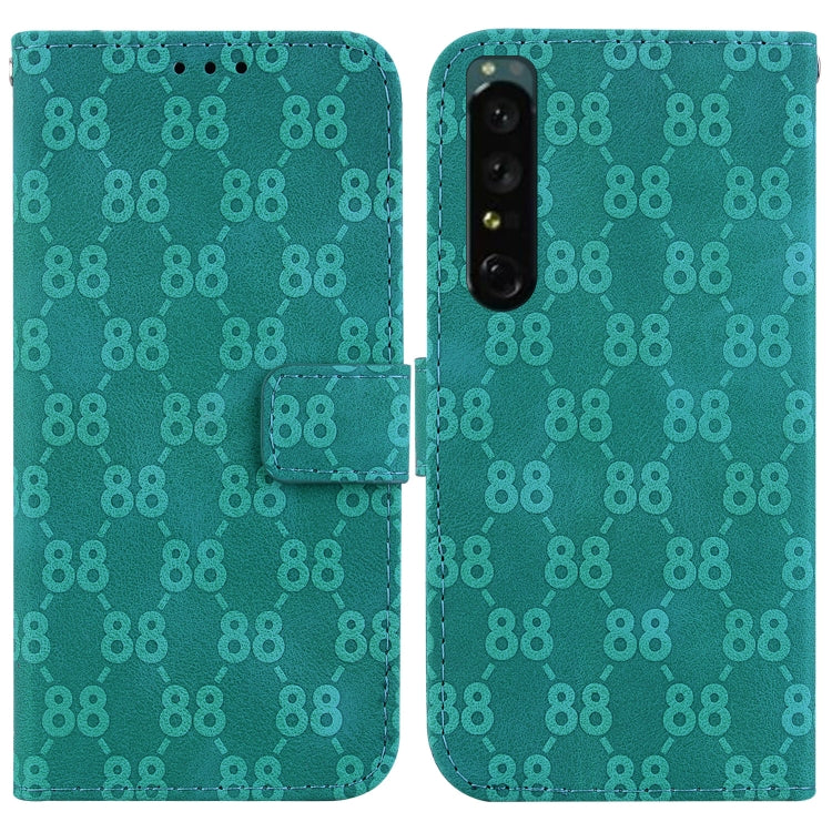 Funda para Sony Xperia 1 V Doble 8 En Forma de Caja de Teléfono de Cuero En Relieve (Verde)