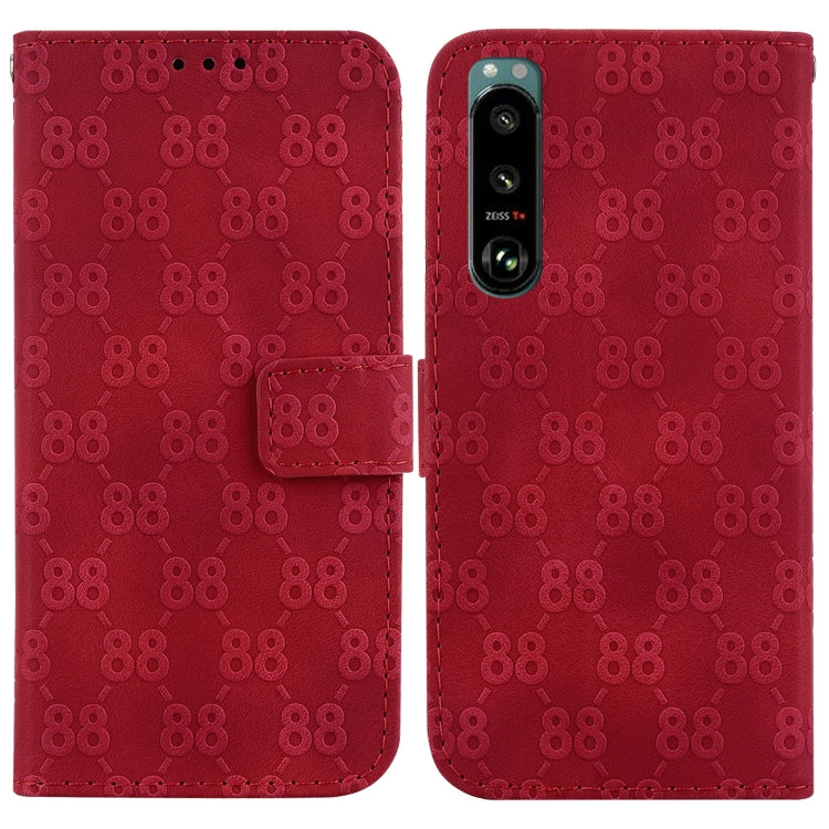 Estuche para Sony Xperia 5 III de Cuero en Relieve con Doble Forma de 8 (Rojo)