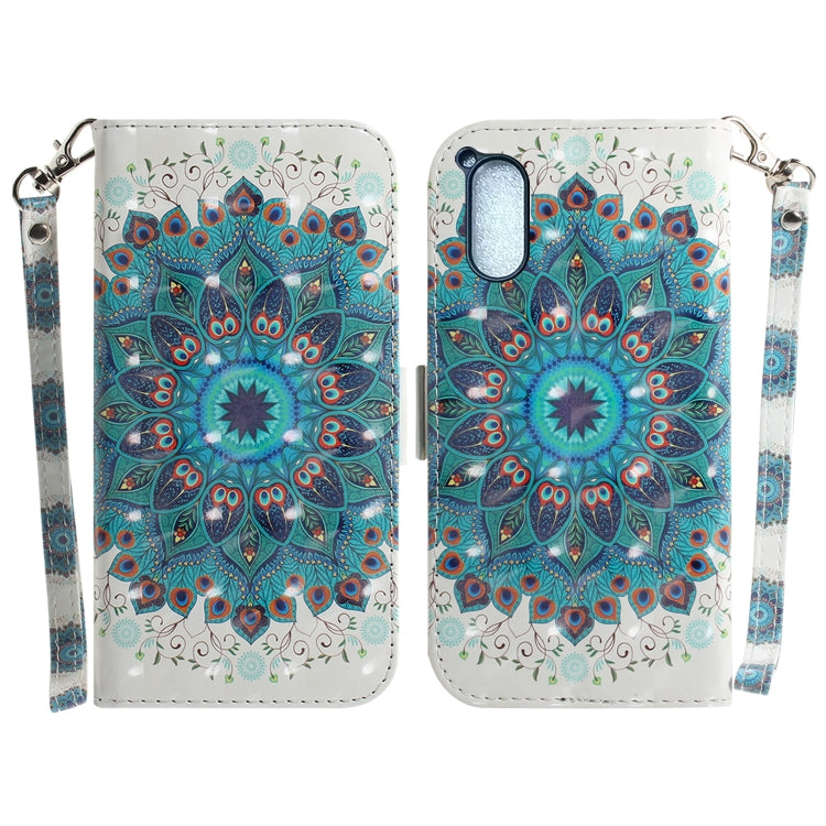 Estuche de Cuero para Sony Xperia 5 V con Tapa Horizontal y Diseño 3D (Corona de Pavo Real)