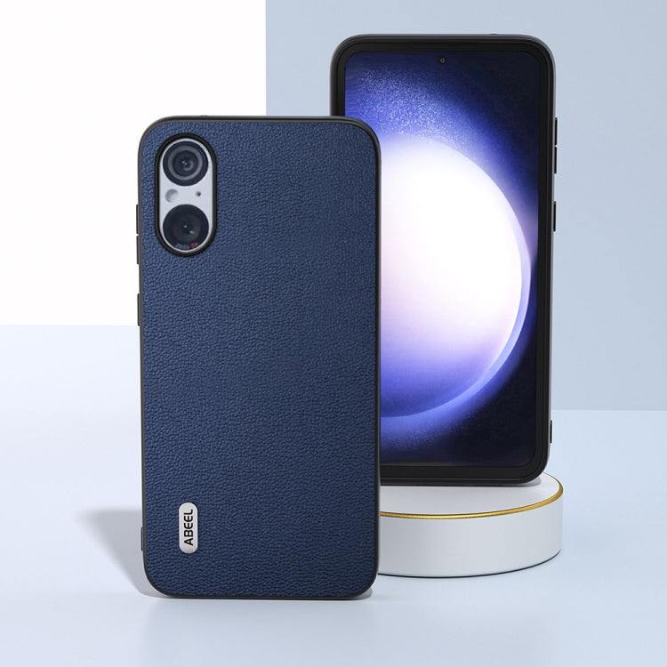 Funda para Sony Xperia 5 V Abeel Serie Luolai Cuero Genuino (Azul Oscuro)