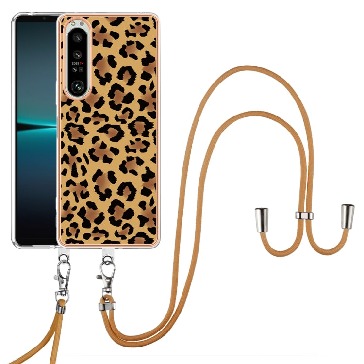 Estuche para Sony Xperia 1 IV IMD Doble Cara con Galvanoplastia y Cordón (Leopardo)