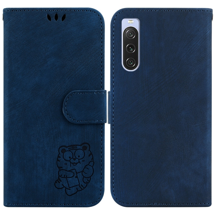 Funda de Cuero para Sony Xperia 10 V con Relieve Little Tiger (Azul Oscuro)