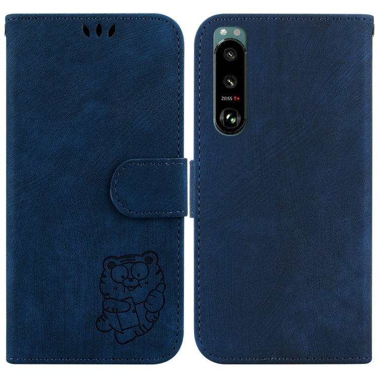 Funda para Sony Xperia 5 III de Cuero con Relieve Little Tiger (Azul Oscuro)