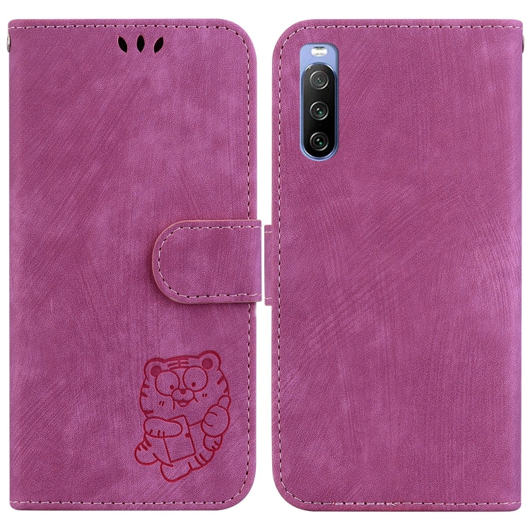 Funda para Sony Xperia 10 III de Cuero con Relieve Little Tiger (Rojo Rosa)