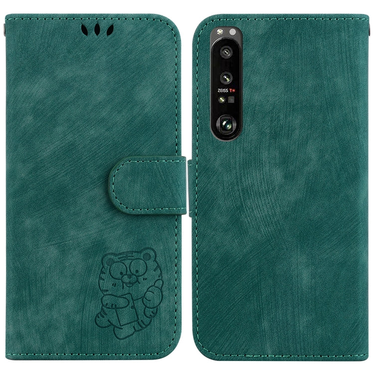 Funda para teléfono Sony Xperia 1 III de cuero con relieve Little Tiger (Verde)